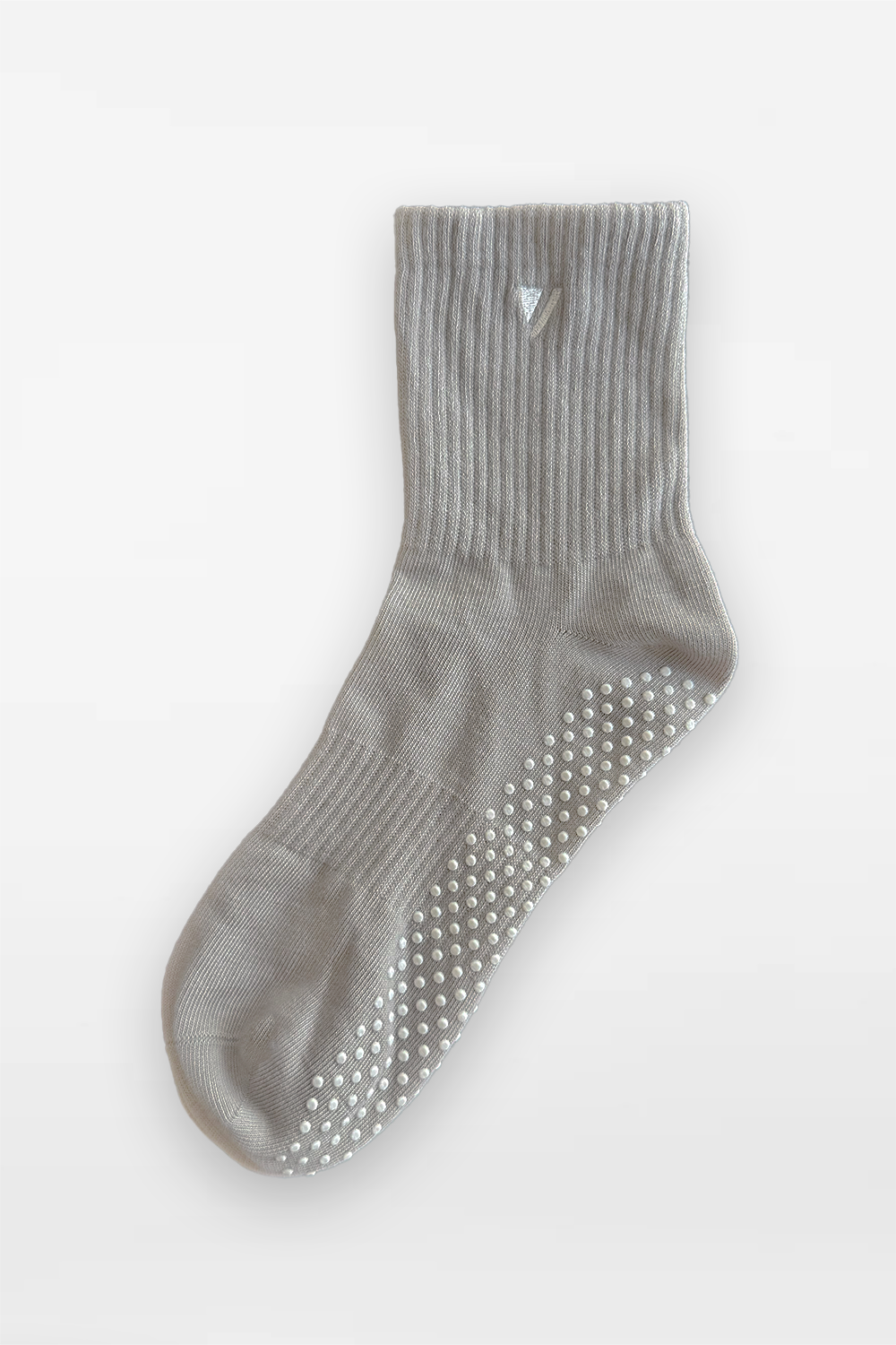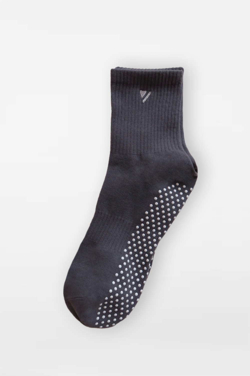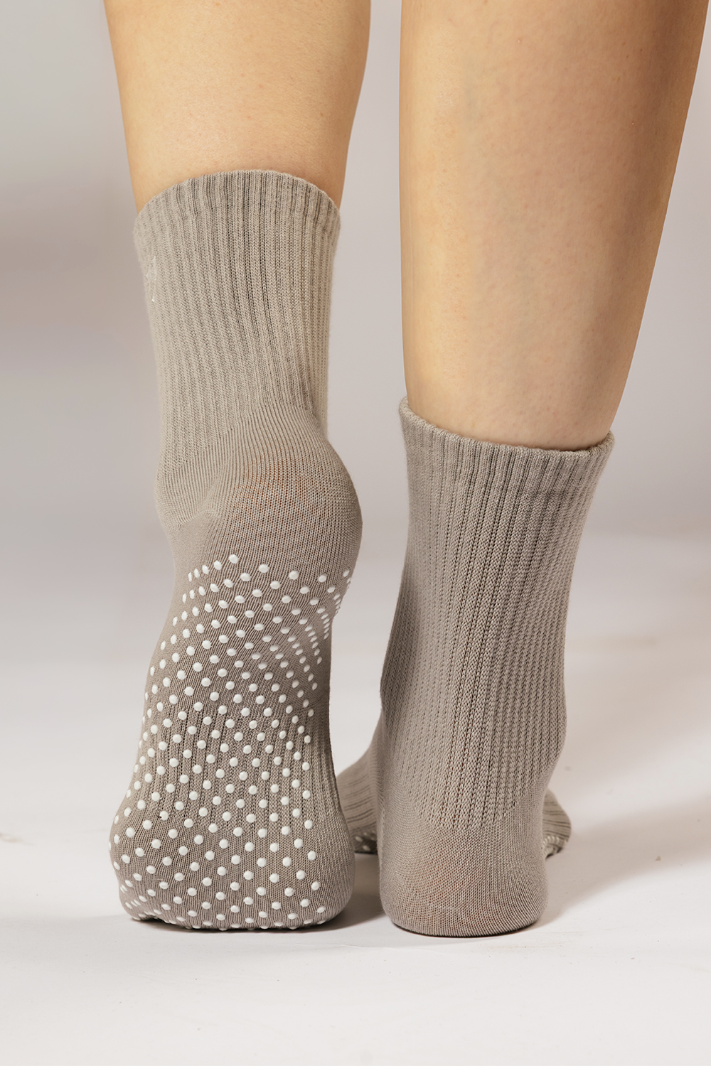 Studio-ready and reformer-approved. A soft cotton blend with silicone-dotted sole grips keeps you stable through every move.