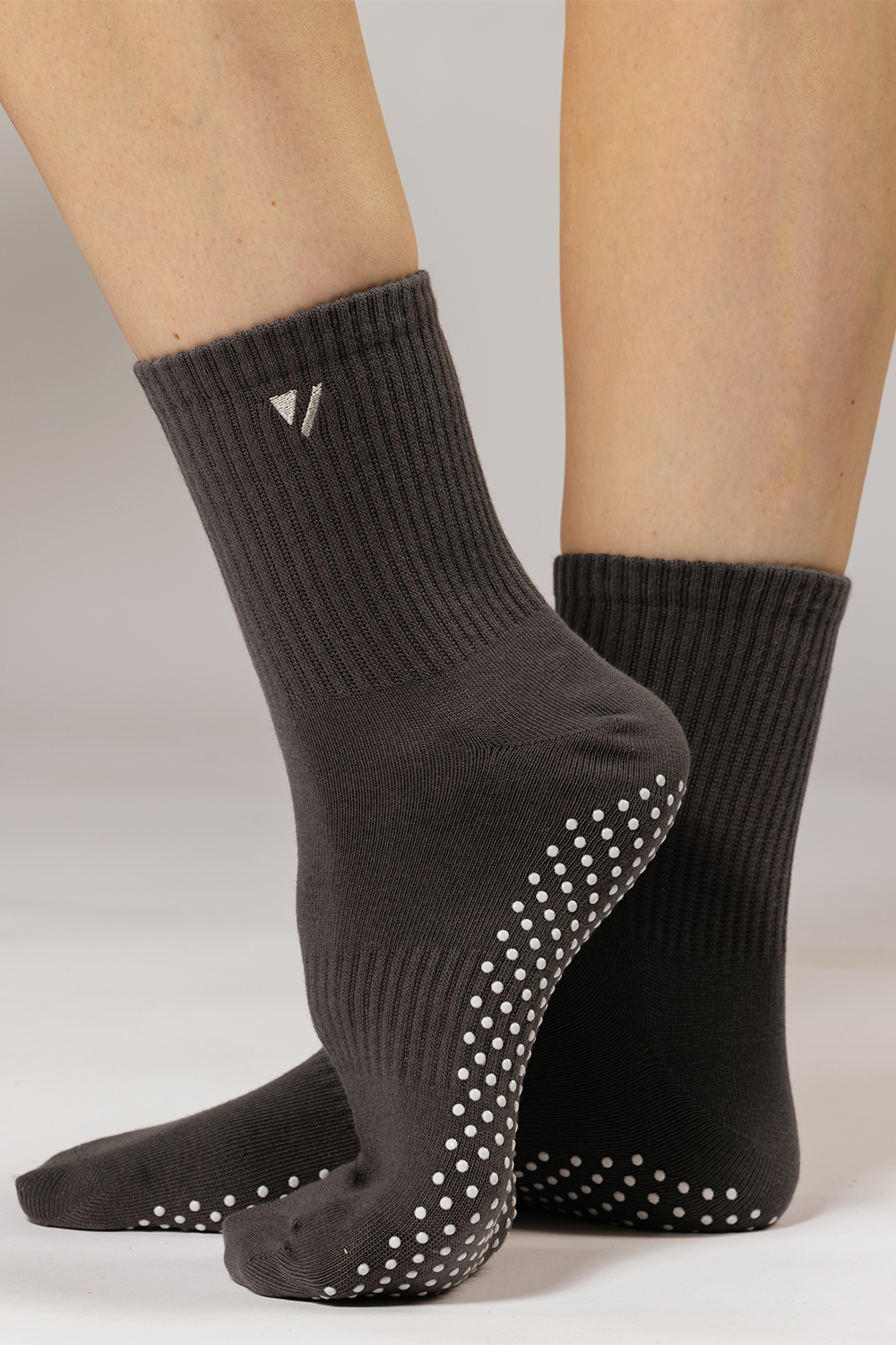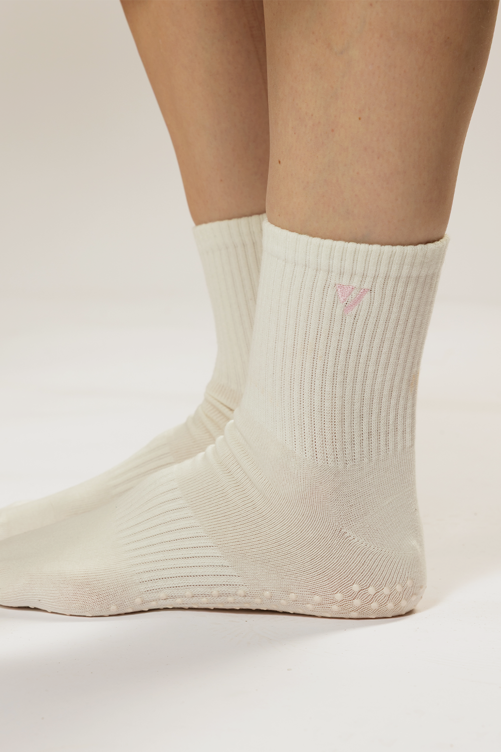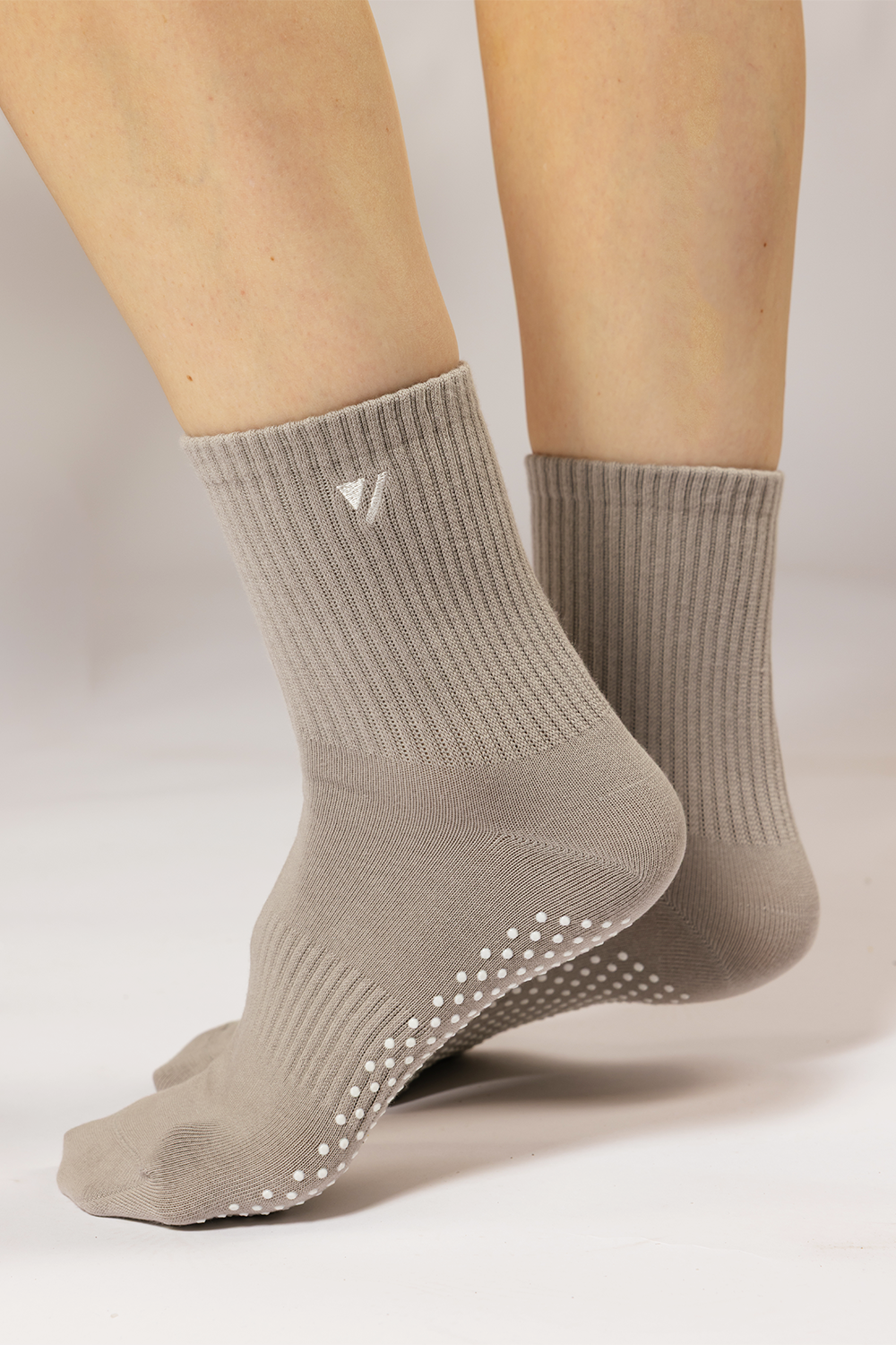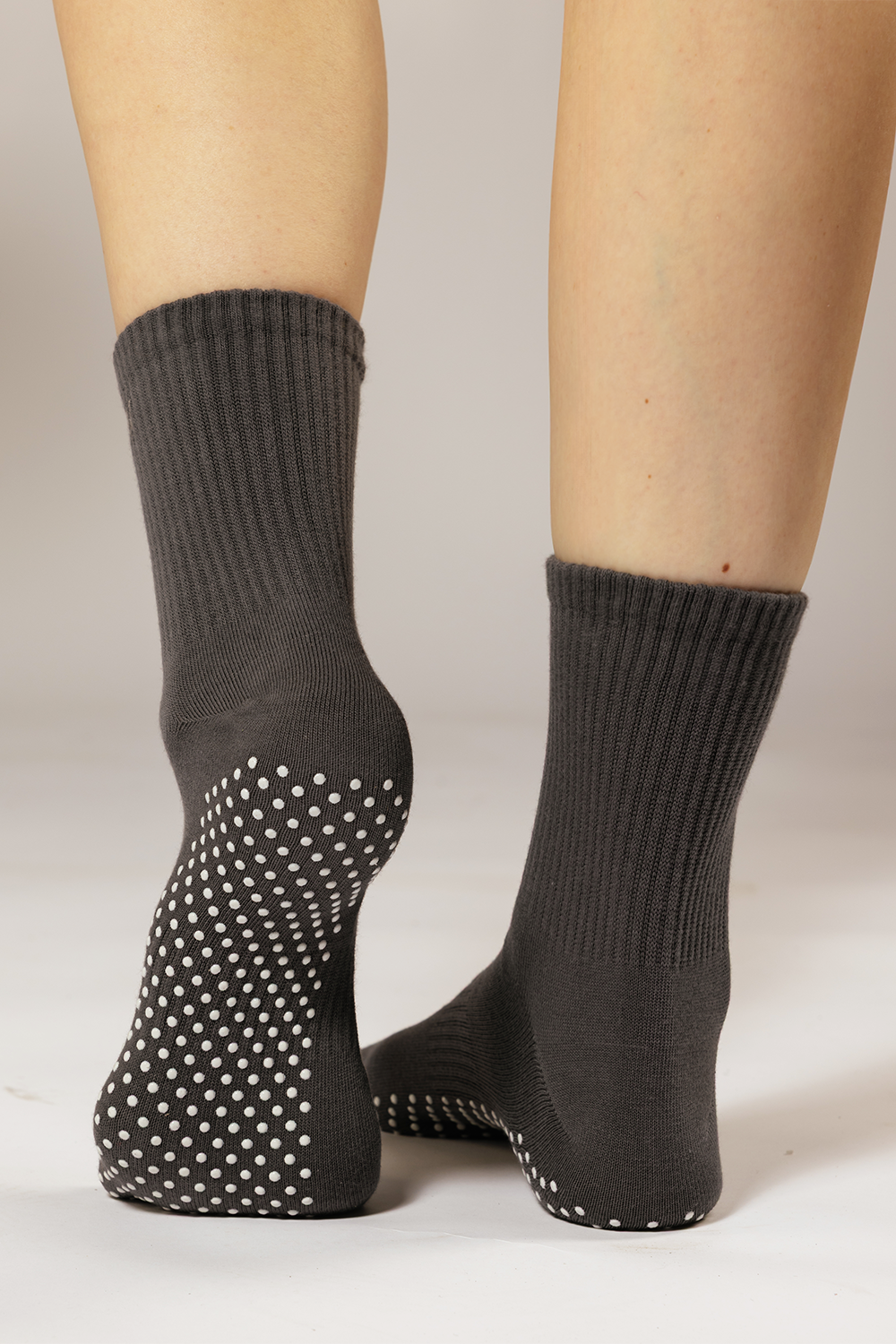 Studio-ready and reformer-approved. A soft cotton blend with silicone-dotted sole grips keeps you stable through every move.