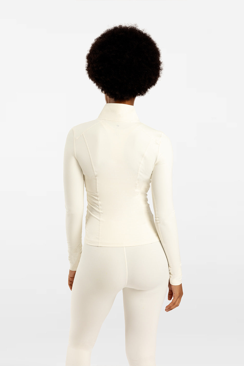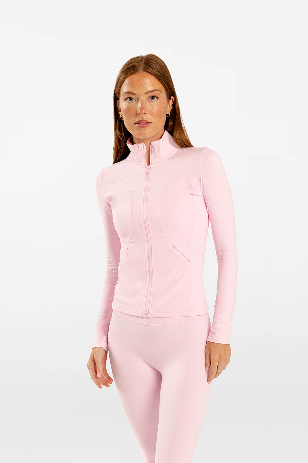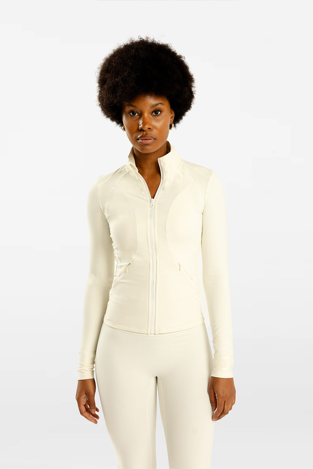 Engineered with soft-touch fabric that sculpts and moves with you. Featuring a sleek full-length zipper, hidden pockets, and a faux collar. Perfect for layering post-workout or styling on the go.